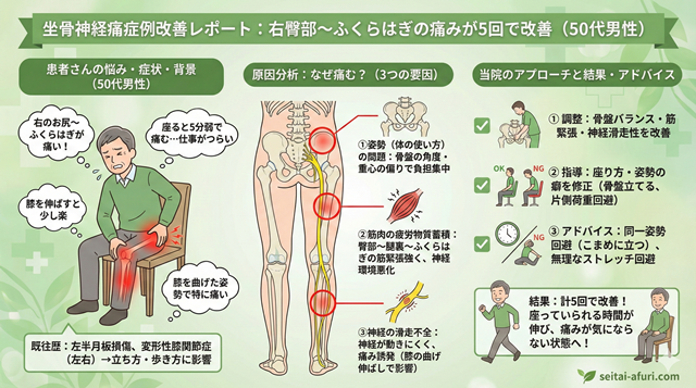 座ると5分弱で痛む右坐骨神経痛(50代男性)のケース