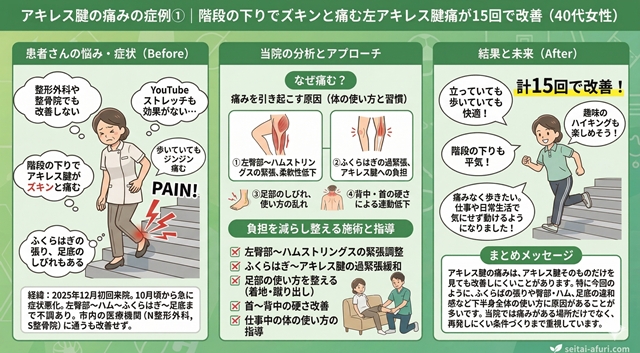 階段の下りでアキレス腱がピキンと痛む40代女性のケース